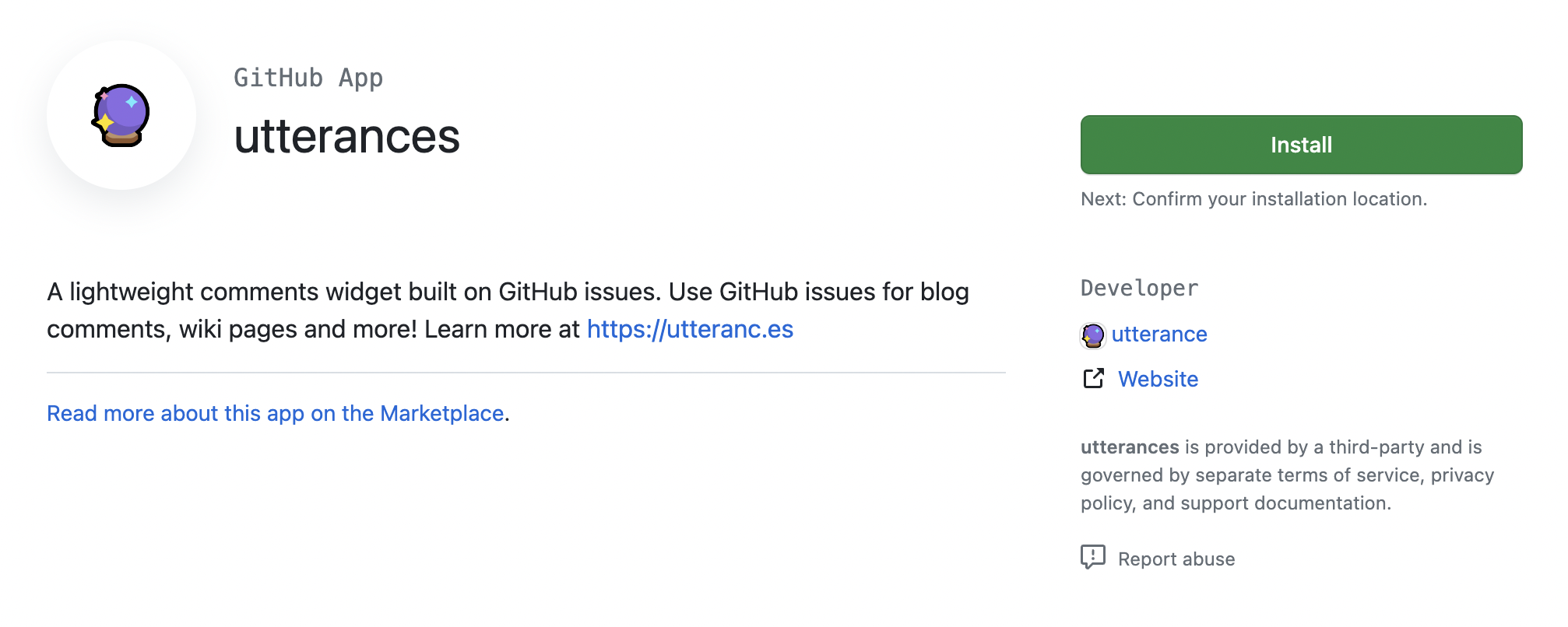 - Utterance GitHub 앱 주소: https://github.com/apps/utterances